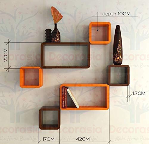 DECORASIA� Beautiful & Antique Cube & Rectangle Shape (Set of 6) Mounted Rack Shelves.
