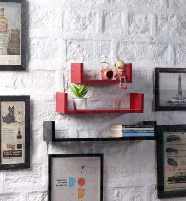 DECORASIA� Beautiful U Shape Wooden Wall Shelf for Multi Purpose Utility MDF Wall Shelf