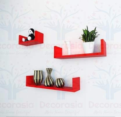 DECORASIA� Beautiful U Shape Wooden Wall Shelf for Multi Purpose Utility MDF Wall Shelf