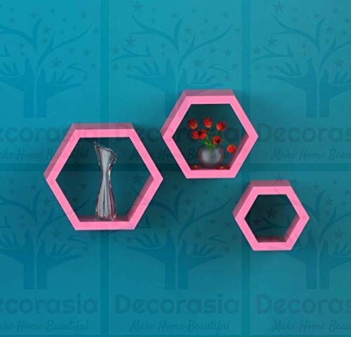 DECORASIA� Beautiful Wooden Hexagon Shape Designer Storage Shelves MDF (Set of 3) (Medium Density Fiber) Wall Shelf