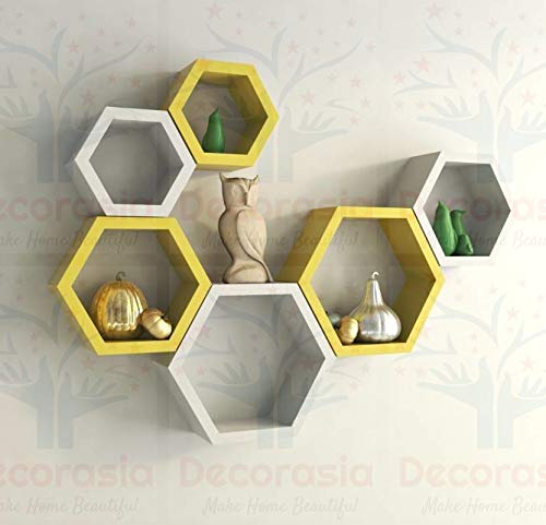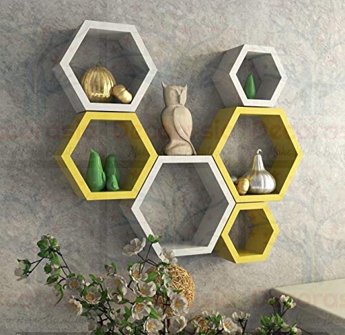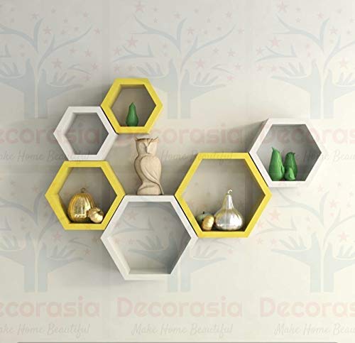 DECORASIA� Beautiful Wooden Hexagon Shape Designer Storage Shelves MDF (Set of 6) (Medium Density Fiber) Wall Shelf