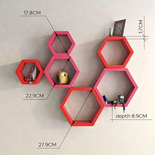 DECORASIA� Beautiful Wooden Hexagon Shape Designer Storage Shelves MDF (Set of 6) (Medium Density Fiber) Wall Shelf