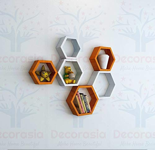 DECORASIA� Beautiful Wooden Hexagon Shape Designer Storage Shelves MDF (Set of 6) (Medium Density Fiber) Wall Shelf