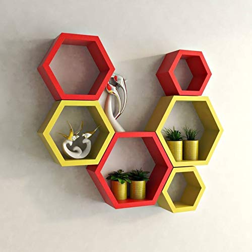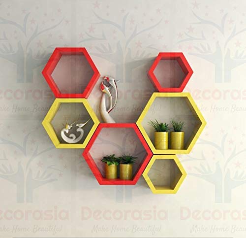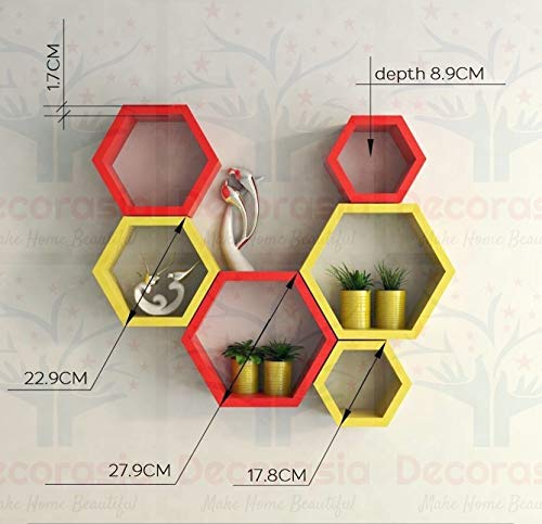 DECORASIA� Beautiful Wooden Hexagon Shape Designer Storage Shelves MDF (Set of 6) (Medium Density Fiber) Wall Shelf