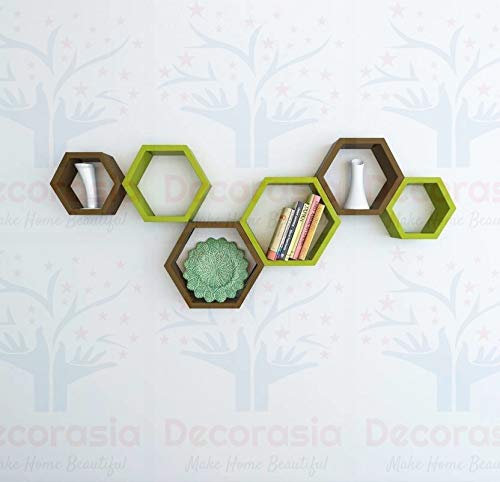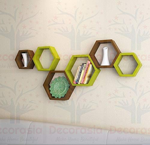 DECORASIA� Beautiful Wooden Hexagon Shape Designer Storage Shelves MDF (Set of 6) (Medium Density Fiber) Wall Shelf