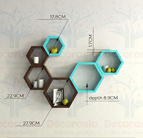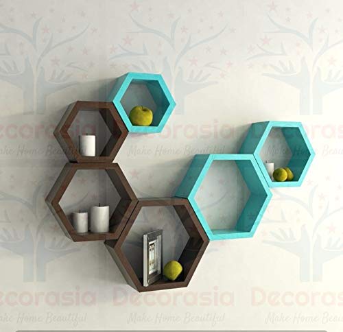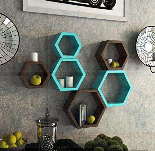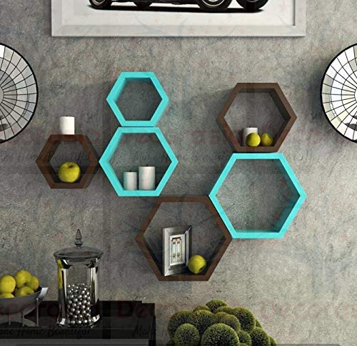 DECORASIA� Beautiful Wooden Hexagon Shape Designer Storage Shelves MDF (Set of 6) (Medium Density Fiber) Wall Shelf