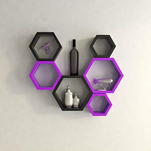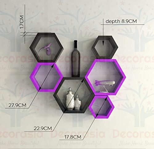 DECORASIA� Beautiful Wooden Hexagon Shape Designer Storage Shelves MDF (Set of 6) (Medium Density Fiber) Wall Shelf