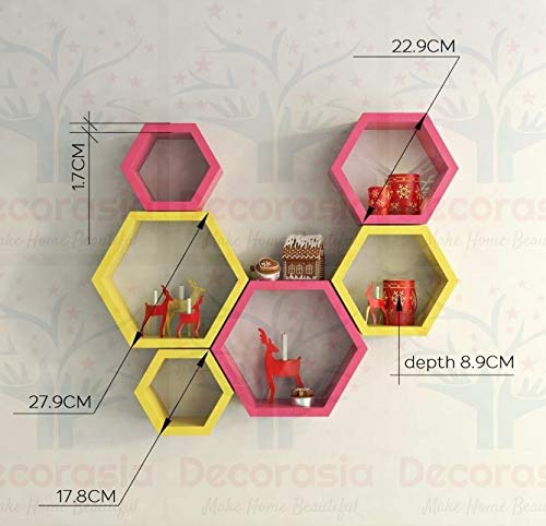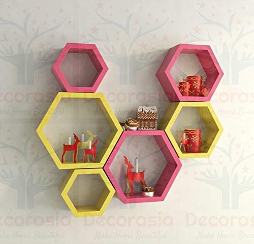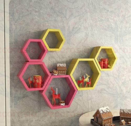 DECORASIA� Beautiful Wooden Hexagon Shape Designer Storage Shelves MDF (Set of 6) (Medium Density Fiber) Wall Shelf
