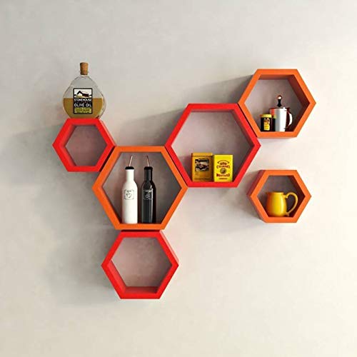 DECORASIA� Beautiful Wooden Hexagon Shape Designer Storage Shelves MDF (Set of 6) (Medium Density Fiber) Wall Shelf