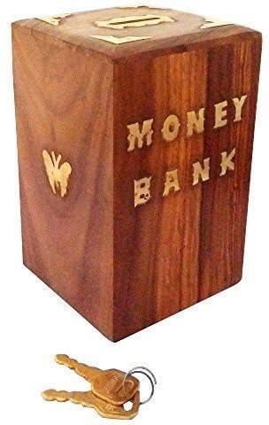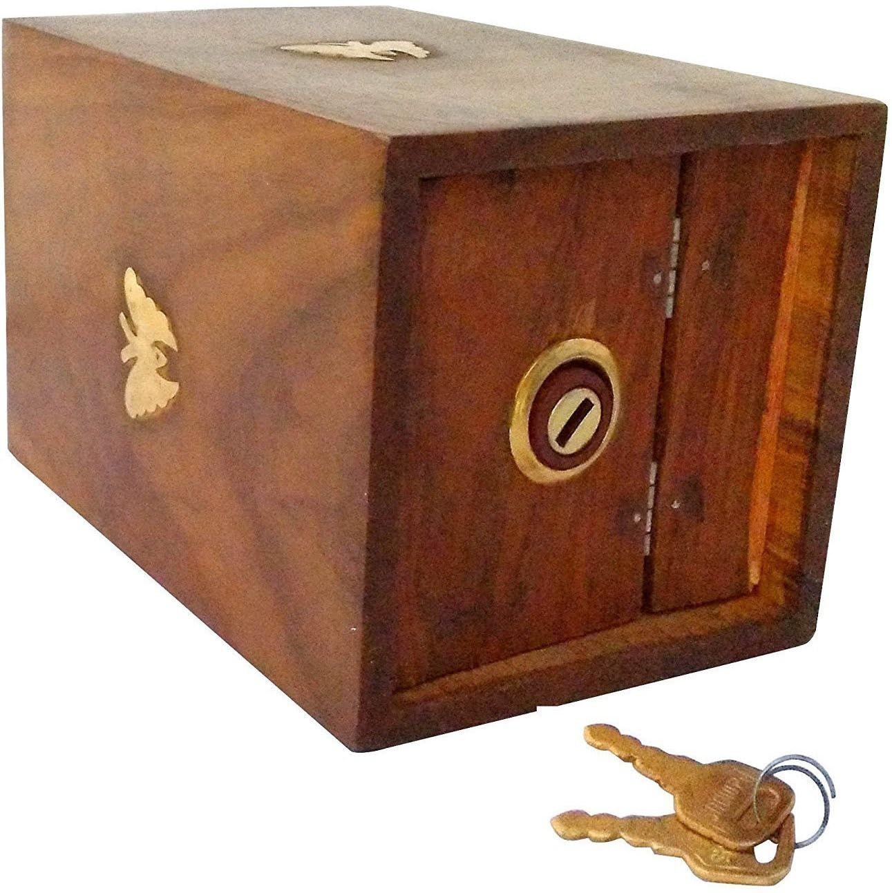Decorasia Special Valentine Gift- Handmade Wooden Money Bank with Lock & Keys|Butterfly Inlay Coin Storage Box | Piggy Bank for Kids & Adults | Secure Saving Box for Birthday,Xmas & Festive Gifting