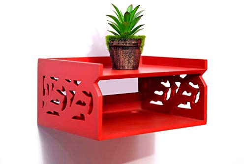 DECORASIA Wooden Beautiful WiFi Stand and Tv Set top Box Stand (Red)