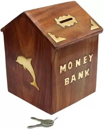 Decorasia Wooden Money Bank with Lock & 2 Keys | Safe Piggy Bank for Kids | Handcrafted Coin Saving Box | Secure Wooden Gullak for Boys & Girls