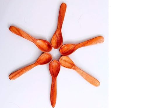 Handmade Sheesham Wood Masala Spoons, 10 cm Length, Set of 6, Chemical-Free