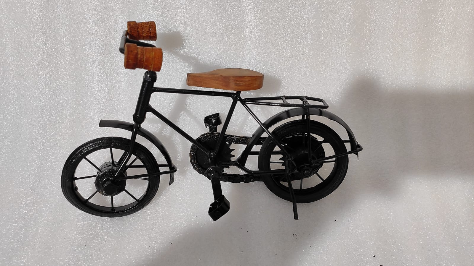 Wood and Wrought Iron Stand Cycle Showpiece for Living Room Toy Gifts Showcase Display Home Desktop Decor Cycle for Decoration and Toy - Black